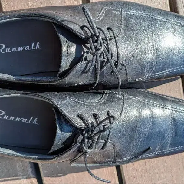 블랙 레이스업 드레스 슈즈, 밴딩 밑창으로 쾌적한 착용감. - 브랜드: Runwalk - 색상: 블랙 - 밑창 소재: 고무 - 디자인: 레이스업 - 스타일: 드레스 슈즈 1~2회 사용한 비품입니다. 발꿈치 마모 없습니다. 방문해 주셔서 감사합니다.