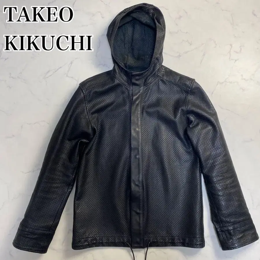 다케오 키쿠치 후드티 L 펀칭 가죽 블랙 검정 단추식 소가죽 싱글 더블 가죽 자켓 라이더 자켓 가죽옷 바이크 투링 천연 가죽