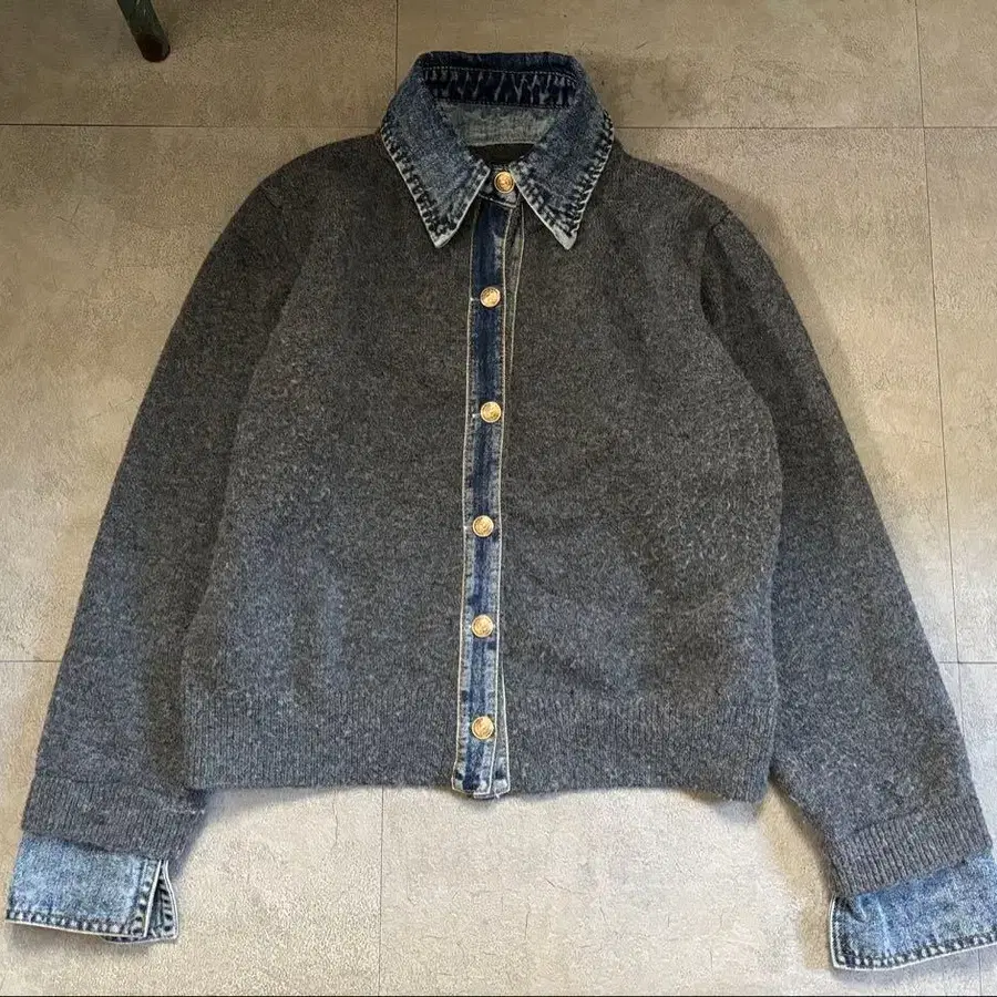 데님 절개 페이크 레이어드 니트 가디건 2회 착용 보풀 있음 소재: 본체: 폴리에스테르 89% 나일론 5% 울 4% 폴리우레탄 2% 별도 천: 면 100% 원산국: 중국