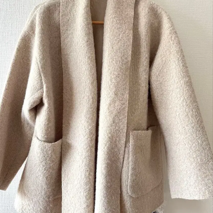 미사용 새상품 베이지 재고 부클 저지 착용 코트 베이지 프리 사이즈