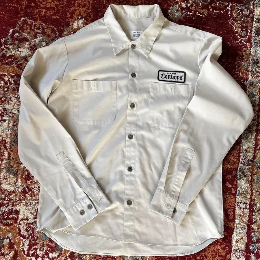 프론트와 백에 자수 로고 디자인이 들어간 긴팔 셔츠.