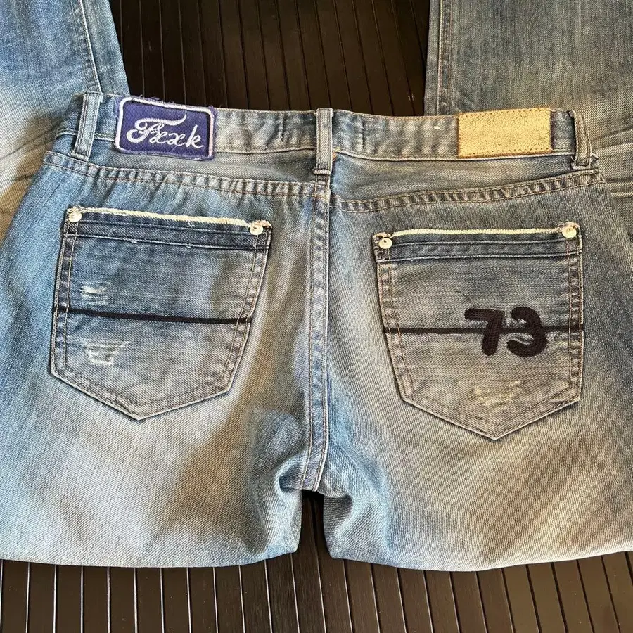 Y2K archive 데님 스터드 히게 주름 가공 데미지 가공 자수