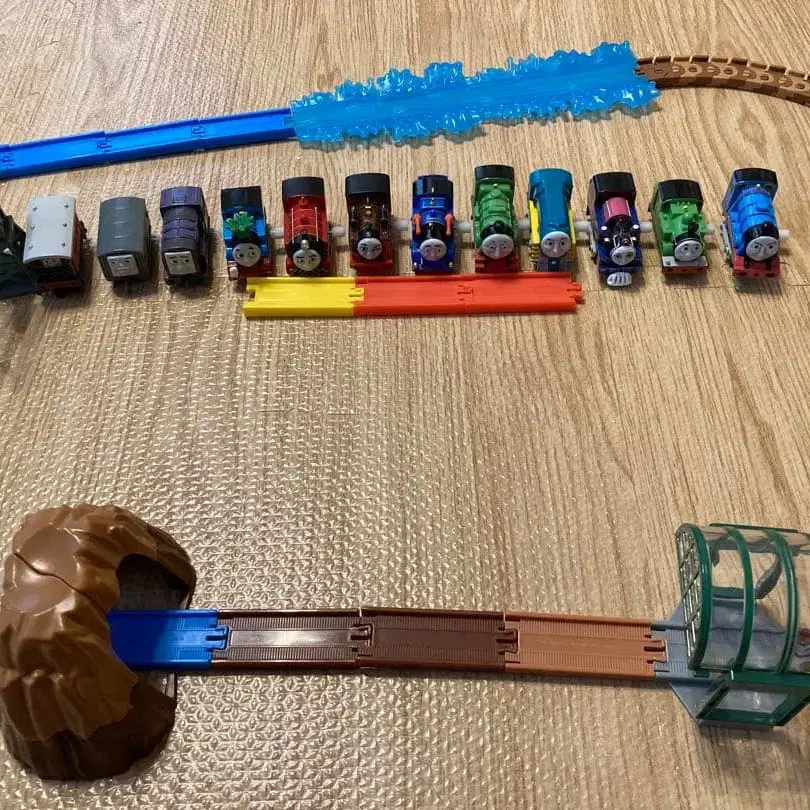 이미지 7, 8번째에 흠집이 있습니다. 다색의 프라레일 차량 세트, 터널과 역 포함. - 아이템명: 프라레일 캡슐 프라레일 차량 - 색상: 다색 - 부속품: 터널, 역, 선로 - 시리즈: 프라레일 시리즈 - 캐릭터: 토마스, 제임스, 고든 등 방문해 주셔서 감사합니다.