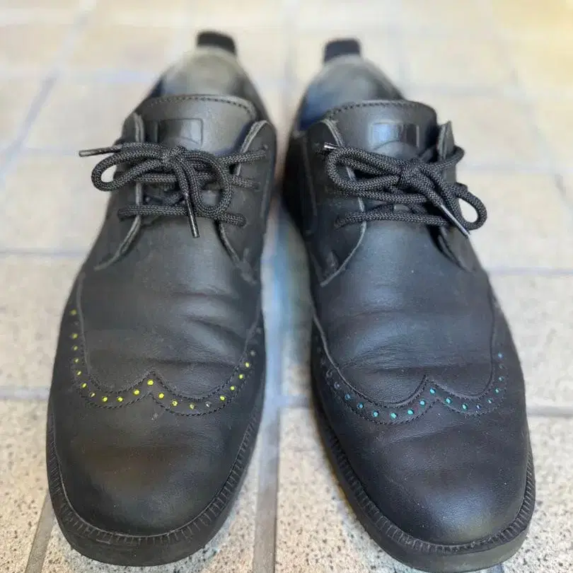 중고품이므로, 약간의 착용 주름, 밑창 마모 등이 있지만, 좌우의 세세한 부분의 색상이 다른 섬세한 디자인의 멋진 상품으로, 아직 사용하실 수 있는 상태입니다.