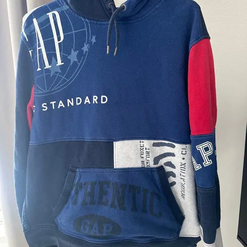패치워크 디자인의 GAP 후드티, 캐주얼 스타일에 최적. - 브랜드: GAP - 색상: 네이비, 레드, 그레이 - 특징: 후드 부착, 포켓 있음 - 스타일: 캐주얼 방문해 주셔서 감사합니다. 사이즈 - M