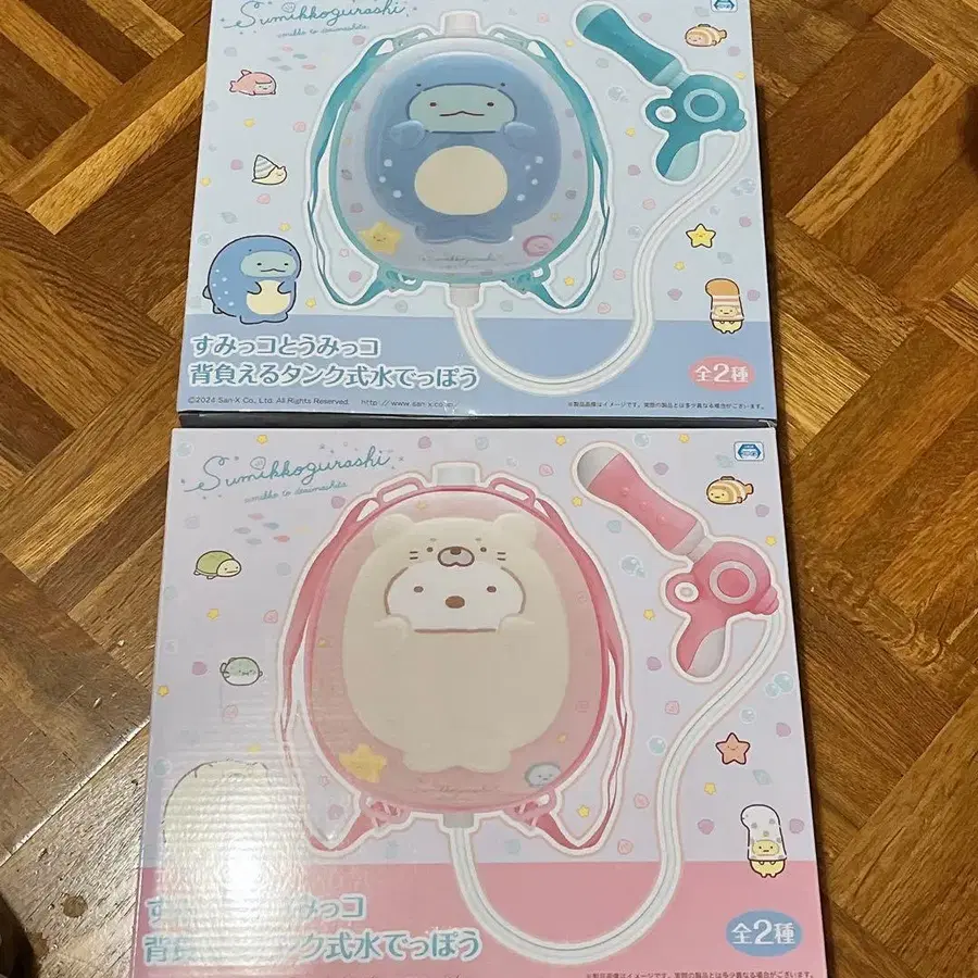 스미코와 우밋코가 멜 수 있는 탱크식 물총 2개 세트입니다.