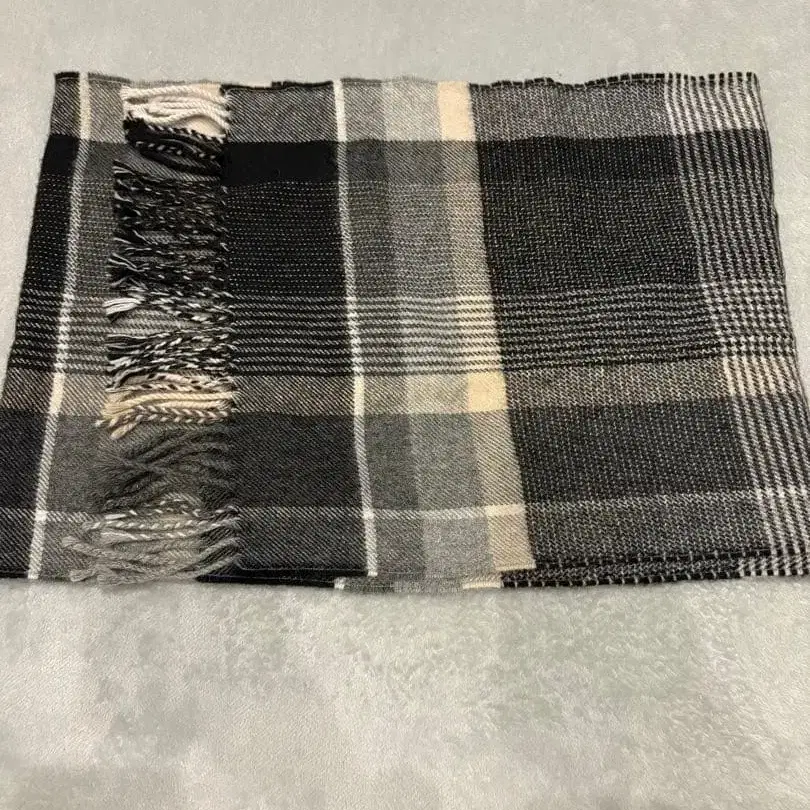 체크 무늬 머플러 그레이 블랙