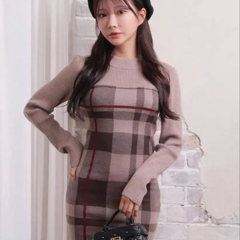 LIP SERVICE 체크 자카드 앙상블 니트 원피스