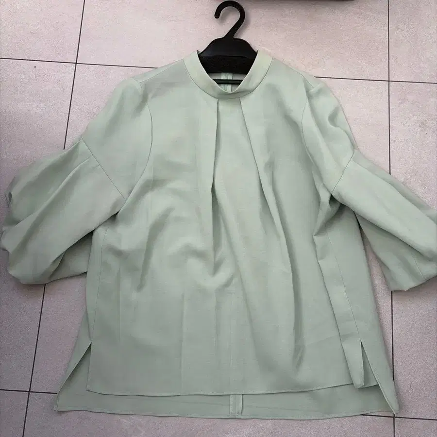 민트 그린 벌룬 소매 칠부 소매 셔츠, 슬릿 디자인으로 스타일리시. - 색상: 민트 그린 - 소매 스타일: 칠부 소매 - 디자인: 슬릿 - 소매 디자인: 벌룬 소매 - 택: 미사용 택 포함 정가 17000엔 방문해 주셔서 감사합니다. 사이즈 - M