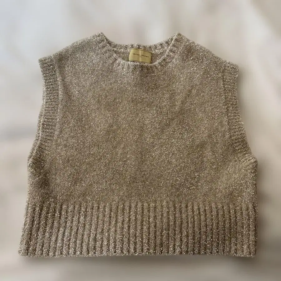 베이지색 슬리브리스 니트 베스트, 리브 편직 밑단이 특징입니다. - 브랜드: UNITED ARROWS - 색상: 베이지 - 디자인: 슬리브리스, 리브 편직 밑단 - 제조지: 도쿄 방문해 주셔서 감사합니다.
