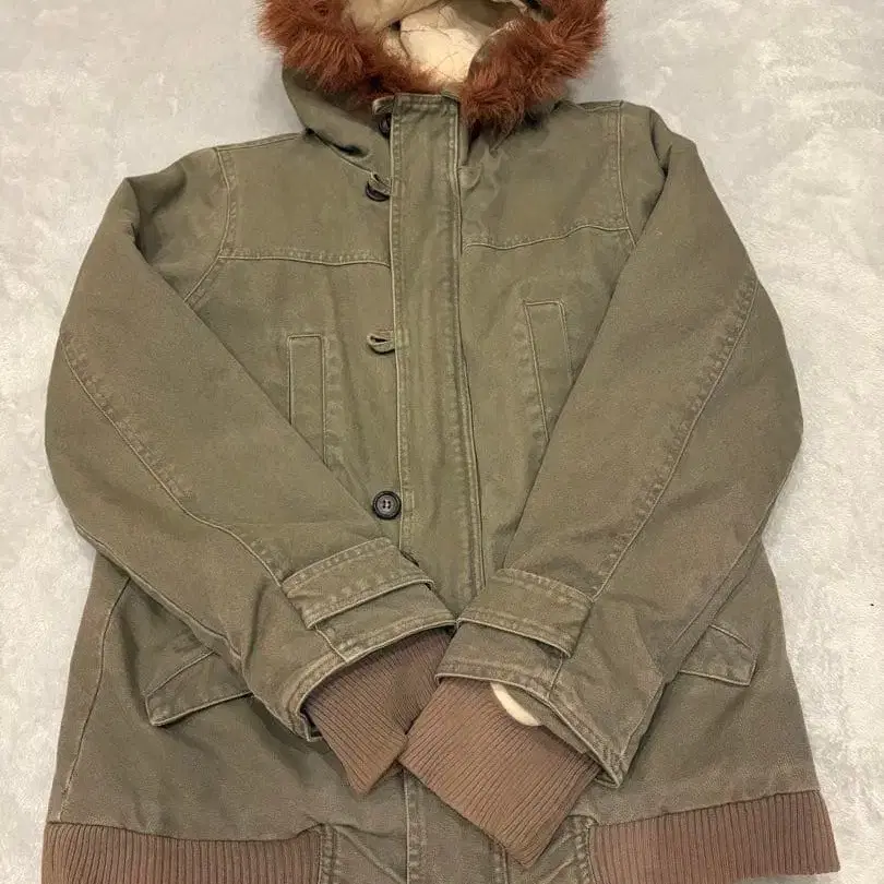 올리브 그린 퍼 자켓 밀리터리