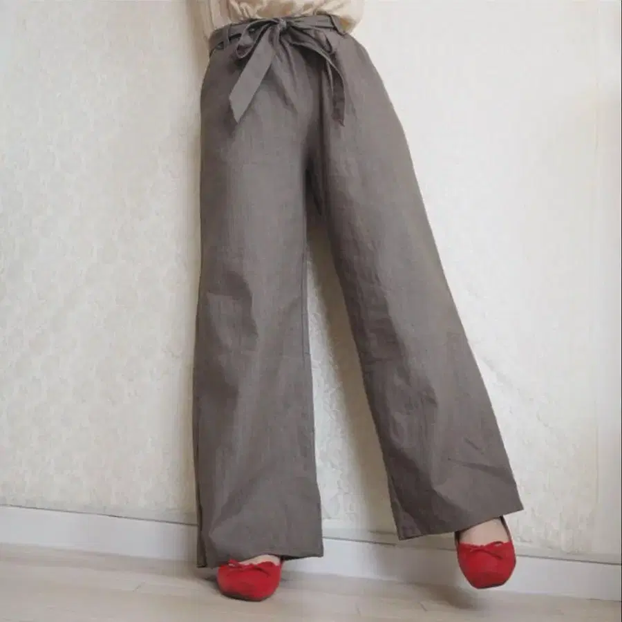 리본이 달린 브라운 와이드 팬츠. - 색상: 브라운 - 디자인: 와이드 팬츠 - 특징: 리본 포함 중고품이며 몇 번 착용했습니다. 사이즈 - FREE SIZE