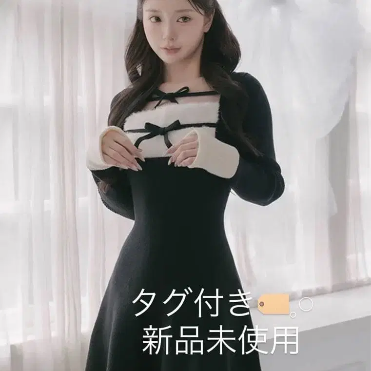 Darich 새상품 도킹 리본 디자인 니트 미니 원피스 [ FL ]