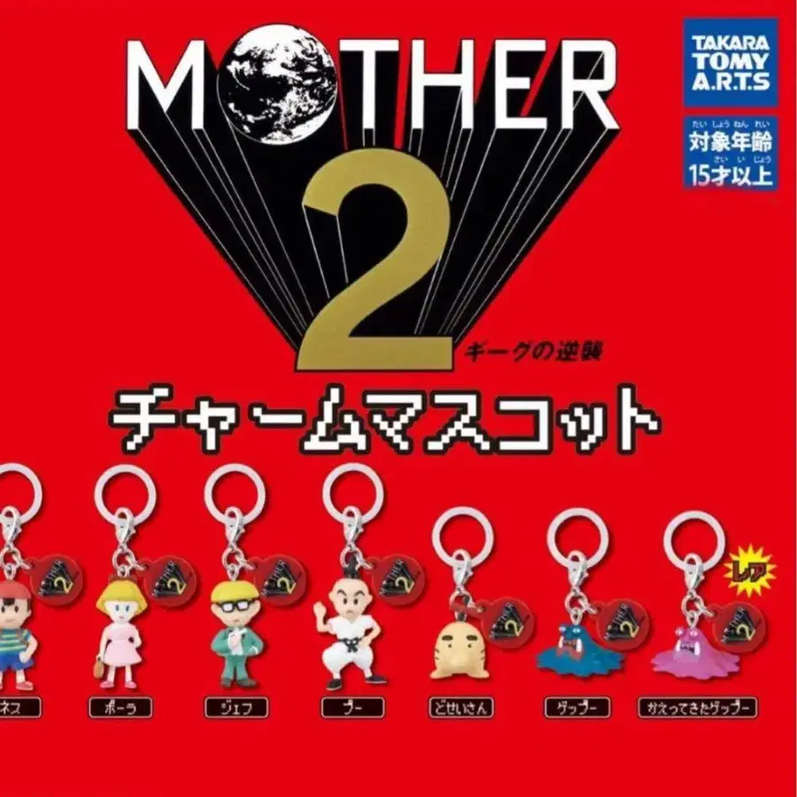 MOTHER 2 캐릭터를 모티브로 한 참 마스코트 세트. MOTHER 2의 캐릭터들이 집결한 참 마스코트 6종 세트. 레어 '돌아온 넵튠'을 제외한 6종 세트로 판매됩니다. 미사용 새상품입니다. 개수만큼 미니북을 동봉합니다. 캡슐은 부속되지 않습니다.