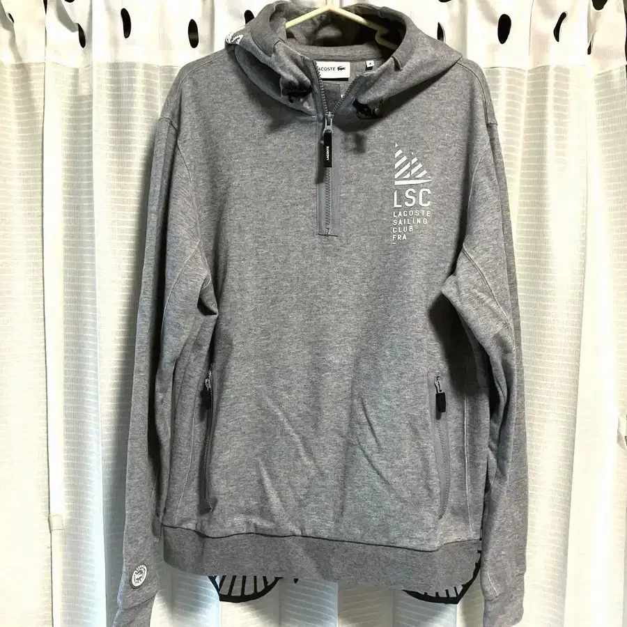 • LACOSTE 그레이 후드 부착 후드티 M