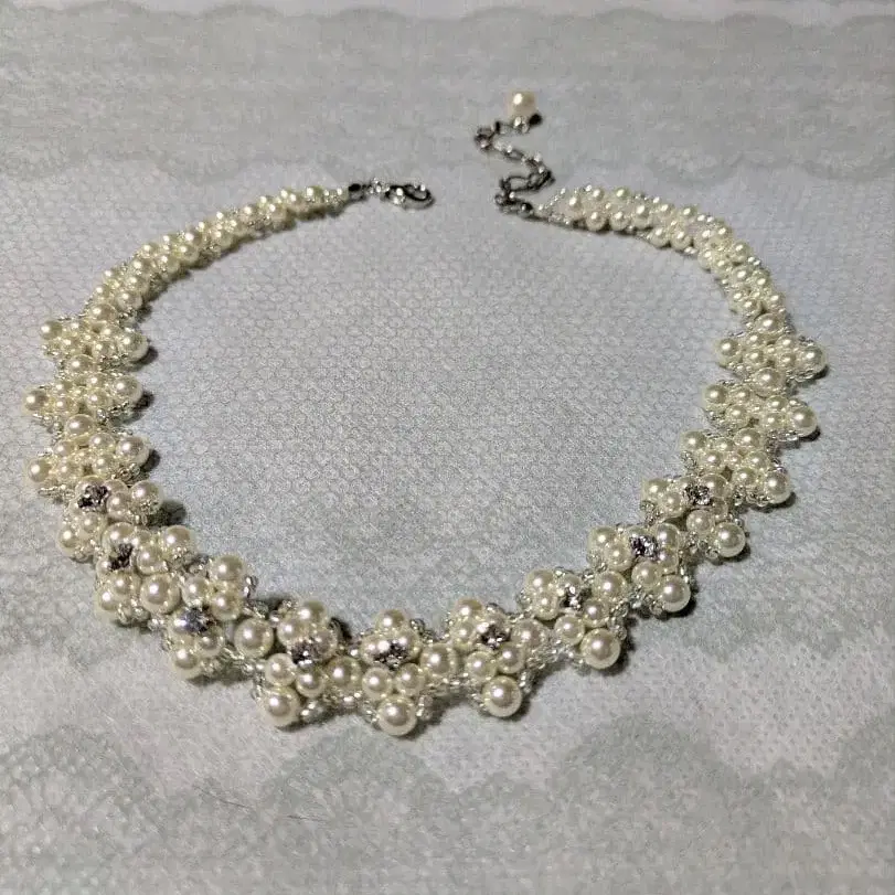 펄과 크리스탈의 화려한 디자인의 목걸이. - 브랜드: PETITSOIR - 색상: 화이트 - 소재: 펄, 크리스탈 - 부속품: 수납 봉투 - 길이 ( 조절 포함 ) 39 cm - 조절 제외 32 cm 방문해 주셔서 감사합니다. 결혼식을 위해 한 번만 사용하고 어두운 곳에 보관했습니다. ※ 반품 불가하오니 양해 부탁드립니다. 상자는 없습니다. 블랙 주얼리 봉투에 넣어 방수 대책, 에어캡으로 포장하여 발송합니다.