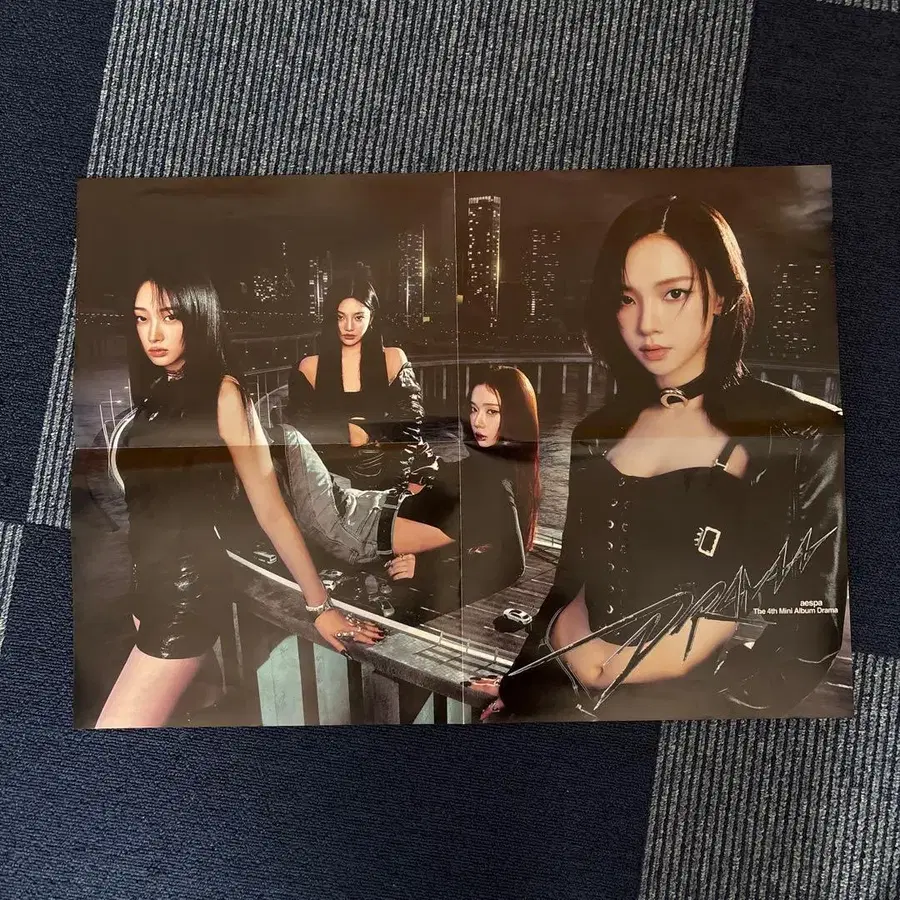 aespa의 4th 미니 앨범 [ Drama ]의 대형 포스터, 멤버들의 비주얼이 매력적입니다. - 앨범명: Drama - 아티스트명: aespa - 디자인: 4명의 멤버 비주얼이 특징인 포스터 - 사이즈: 대형 포스터 - 비주얼: 멤버 클로즈업과 도시 배경 - 릴리스 정보: 4th Mini Album 방문해 주셔서 감사합니다.