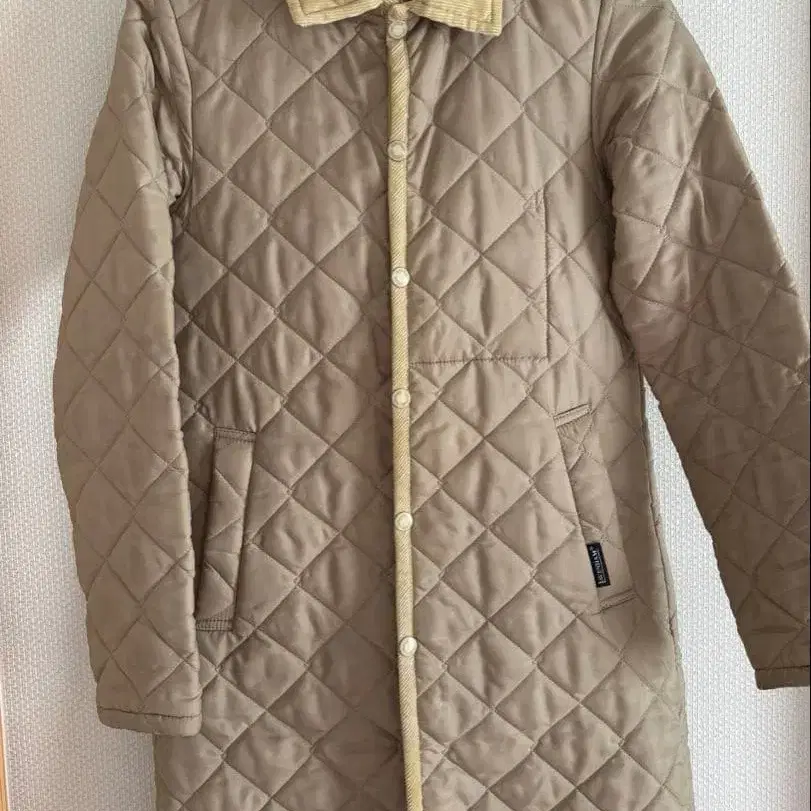라벤햄 퀼팅 코트. 탈부착 가능한 후드 부착. - 색상: 베이지 - 디자인: 퀼팅 - 옷깃 색상: 베이지 - 후드: 있음 - 포켓: 있음 큰 흠집 등은 없으나 사용감과 소매에 얼룩이 있습니다. 사진 7 사이즈 - 36 총길이 약 82cm 가슴 너비 약 45cm