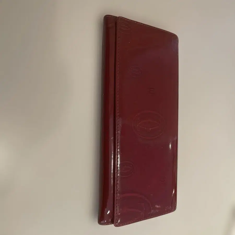 에나멜 소재의 와인 레드 장지갑, 스냅 버튼식으로 카드 포켓이 있습니다. - 색상: 와인 레드 - 소재: 에나멜 - 디자인: 로고 - 개폐 방식: 스냅 버튼식 - 내부 구조: 카드 포켓 있음 방문해 주셔서 감사합니다.