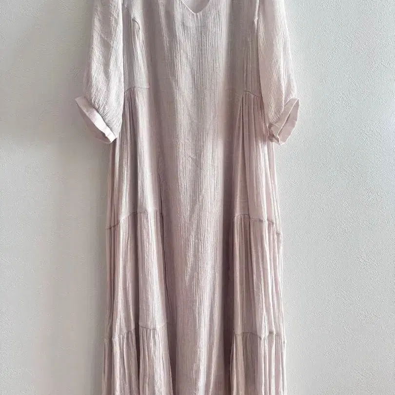 레이온 소재의 부드러운 원피스입니다. 안감 원단도 포함되어 있습니다. 색상은 베이지와 같은 부드러운 색상입니다. 시착 정도로 착용했지만 신경 쓰이는 분은 구매를 자제해주세요(⋆ᴗ͈ˬᴗ͈)'
