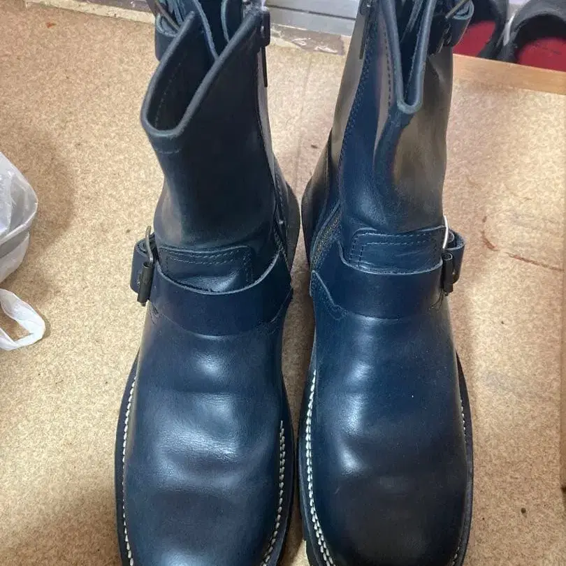슬로우웨어 라이온 엔지니어 부츠 네이비 사이즈 8E 26~26.5 표기입니다. 많이 신지는 않았지만, 오른쪽 힐 부근에 마찰로 인한 상처가 있으며, 밑창 마모는 약간 있습니다. 전체적으로 아직 신을 수 있는 상태라고 생각합니다.