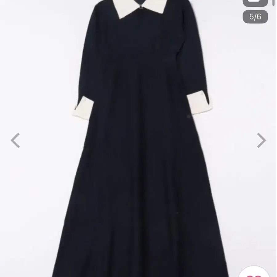 레이스 레이디스 배색 카라 부착 펄 롱 니트 원피스