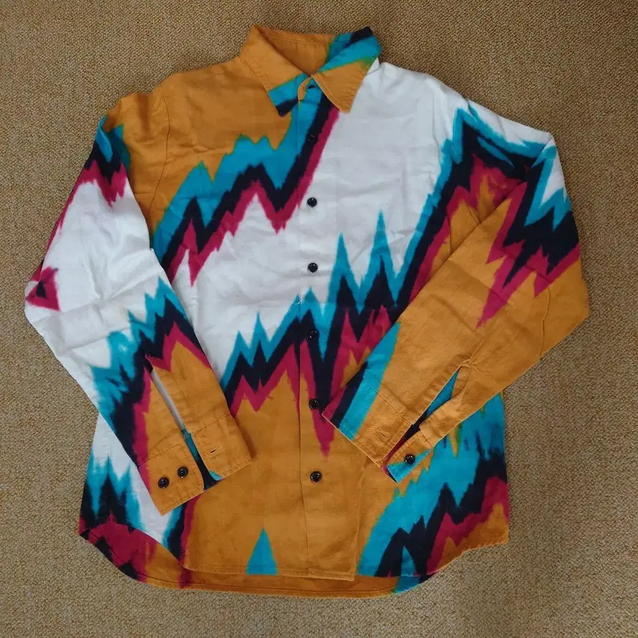 지그재그 패턴의 멀티 컬러 롱 슬리브 셔츠. - 브랜드: RNA - 색상: 멀티 컬러 ( 오렌지, 파랑, 핑크, 화이트 ) - 스타일: 긴팔 셔츠 - 디자인: 지그재그 패턴 - 소재: 코튼 ( 추정 ) 방문해 주셔서 감사합니다.
