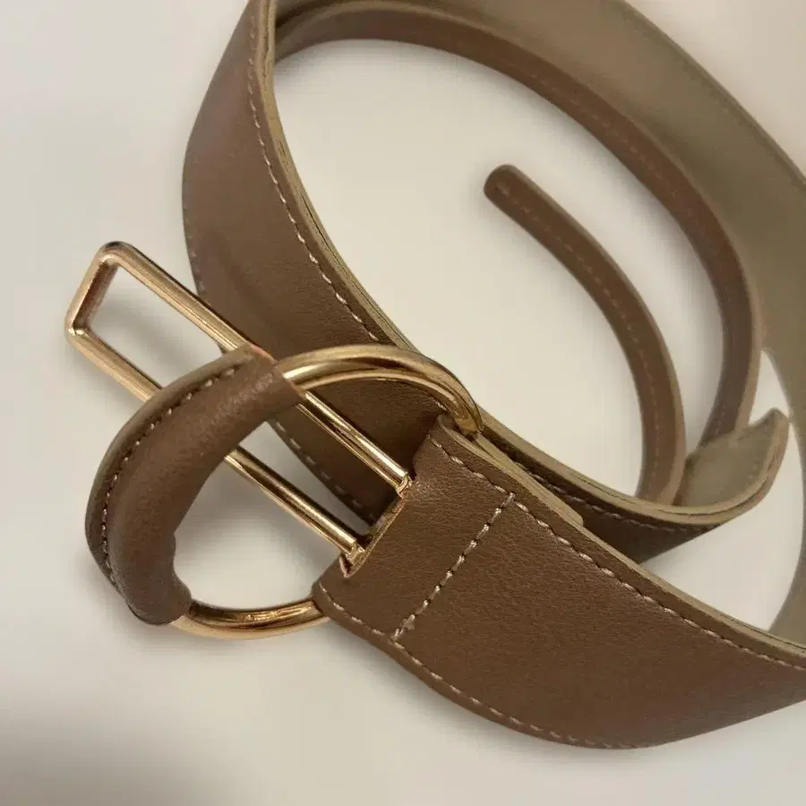 브라운 가죽 벨트 골드 버클