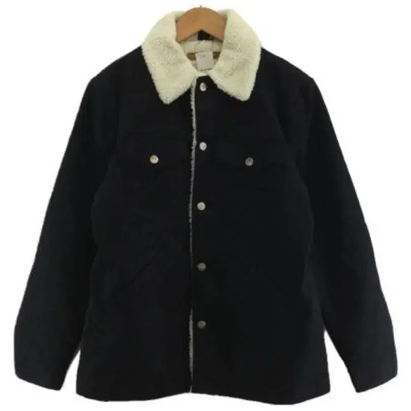 보아 카라 부착 블랙 Wrangler 자켓, 앞면에 2개의 포켓이 있으며, 캐주얼한 스타일에 최적. - 브랜드: Wrangler - 색상: 블랙 - 디자인: 보아 카라 부착 자켓 - 포켓: 앞면에 2개의 포켓 - 소재: 코튼 또는 혼방 소재 방문해 주셔서 감사합니다. 사이즈 - L