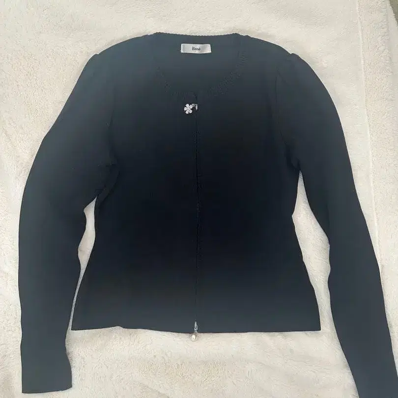 자동 번역되었어요. 원문보기지퍼 디자인의 블랙 가디건, 브로치 포함 엘레강트.