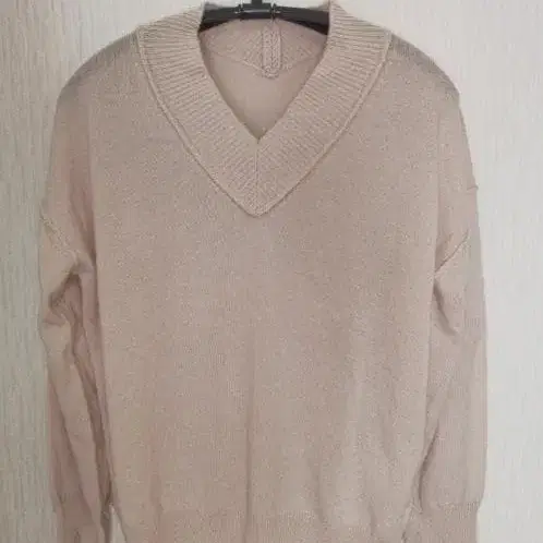 illico 긴팔 풀오버 니트 베이지 계열 V넥 무지 깔끔