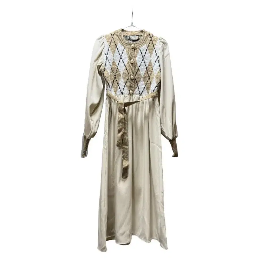 아가일 패턴의 니트와 새틴 롱 원피스. 아이보리 허리 리본 - 색상: 크림색 - 디자인: 아가일 패턴의 니트 부분 - 스타일: 롱 원피스 - 소재: 니트와 새틴 혼합 - 버튼: 펄 버튼 - 브랜드: 31 Season 방문해 주셔서 감사합니다. 컬러 - 화이트 계열 패턴 - 체크 실루엣 - 플레어 계절 - 가을/겨울 얼룩, 찢김, 냄새 등 - 없음