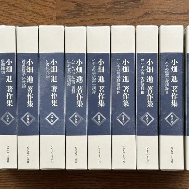 저자: 오바타 스스무 판형: A5판 크로스장 제본 상자입 제1권 [ 요한묵시록 강론집 Ⅰ ] 제2권 [ 요한묵시록 강론집 Ⅱ ] 제3권 [ 요한묵시록 강론집 Ⅲ ] 제4권 [ 요한묵시록 강론집 Ⅳ ] 제5권 [ 베드로전서 강론집 ] 제6권 [ 베드로후서 강론집 전도서 강론집 ] 제7권 [ 불교 사상론 ] 제8권 [ 신도 유교 종교론 ] 제9권 [ 신앙 수필 Ⅰ ] 제10권 [ 신앙 수필 Ⅱ ] 희대의 설교자, 목회자로 평가받는 오바타 스스무 씨의 저작집입니다. 거의 펼치지 않고 종이상자에 담긴 채로 보관되어 있었습니다. 상태는 좋다고 생각합니다. #기독교 #개신교 #생명의말씀사 #종교 #성서