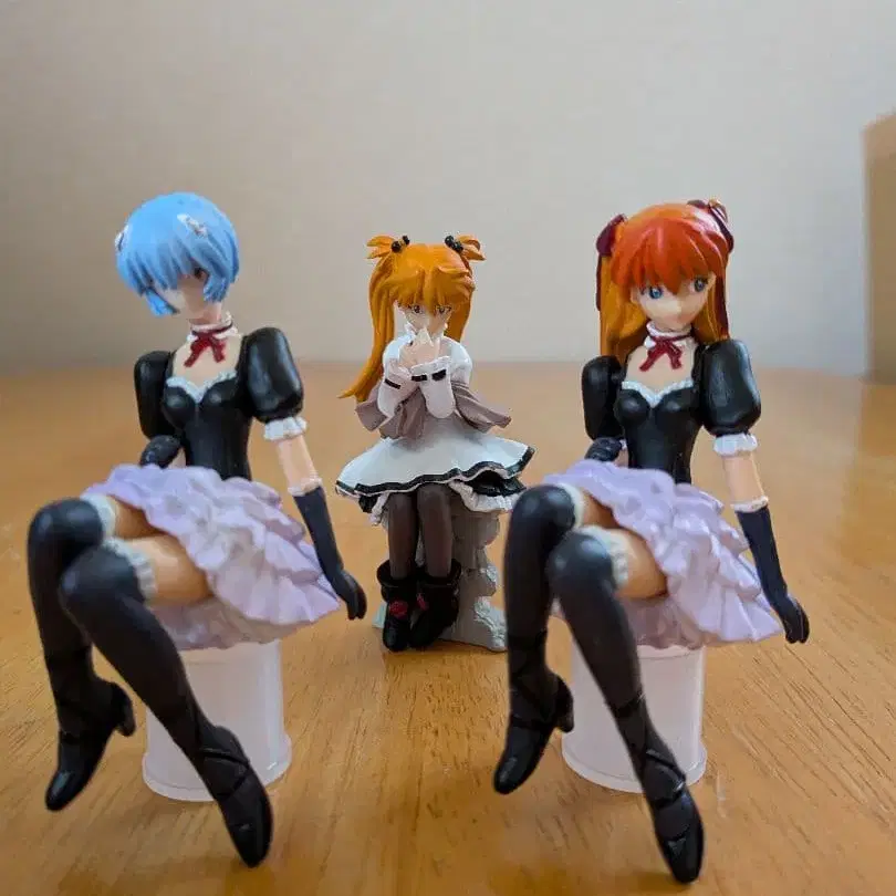 에반게리온 메이드 스타일의 아야나미 레이, 아스카 랑그레이 피규어 3개 세트. - 캐릭터: 레이 - 캐릭터: 아스카 - 스타일: 메이드 - 색상: 파랑, 오렌지, 빨간색 - 소재: 플라스틱 - 포즈: 앉아 있음 - 수량: 3개 세트 - 사이즈: 약 10cm 방문해 주셔서 감사합니다.