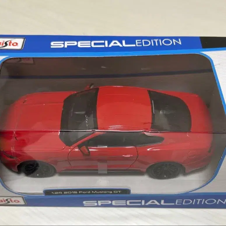1:24 스케일의 2015 포드 머스탱 GT 스페셜 에디션 미니카, 선명한 빨간색으로 디테일이 풍부합니다.