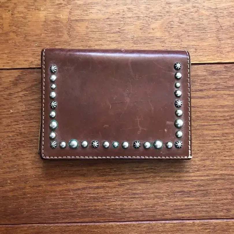 HTC 2단 접이식 지갑 세로: 약 10.8cm 가로: 약 14cm 바닥: 약 1cm 색상: 브라운 소재: 가죽 사용 보관품입니다. 스크래치, 흠집, 오염, 변색, 녹 등이 있으므로 이해해 주시는 분께 권합니다. 잘 보이지 않지만 HTC 각인이 있습니다. 할리우드 트레이딩 컴퍼니 HTC 에이치티씨 컬러 스톤 스터드