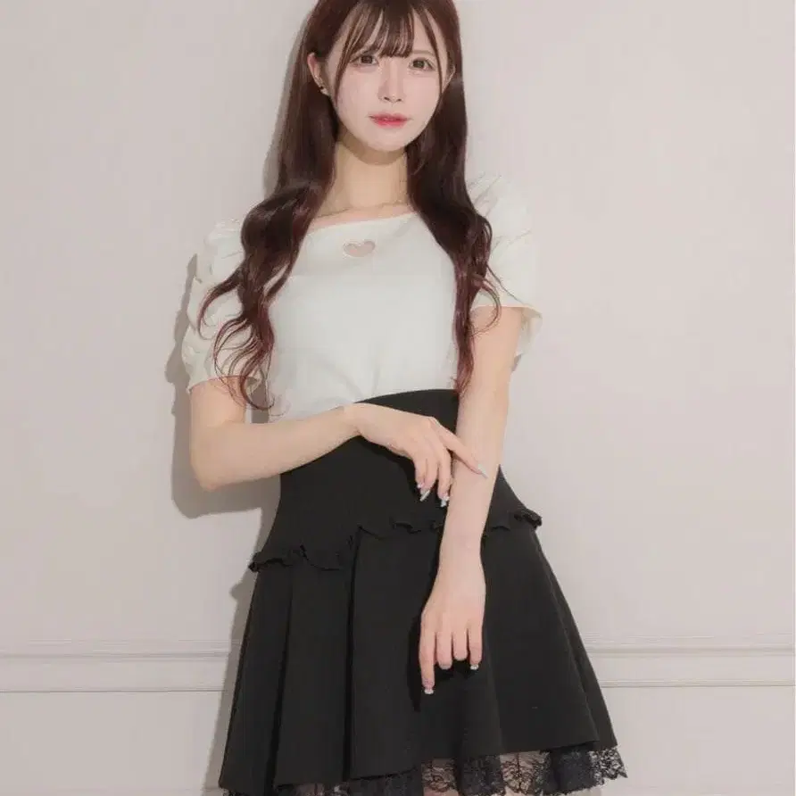 pium 하트 열림 개더 슬리브 티셔츠