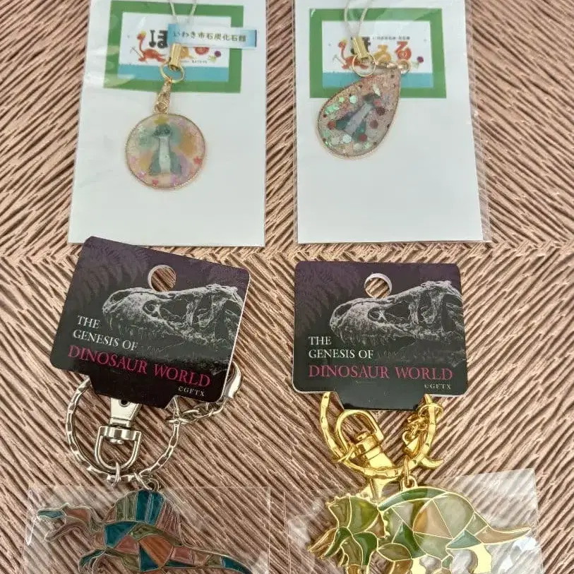 공룡 키링과 거북이 디자인의 핸드메이드 스트랩 세트입니다. - 디자인: 공룡 모티브 키링 -- 색상: 멀티 ( 골드, 그린, 파랑 등 ) - 디자인: 공룡 키링 트리케라톱스 스피노사우루스 거북이 디자인 이와키시 석탄화석관 호루루에서 구매했습니다. 스트랩에 이와키시 석탄화석관이라고 적힌 종이가 붙어 있습니다. 방문해 주셔서 감사합니다.