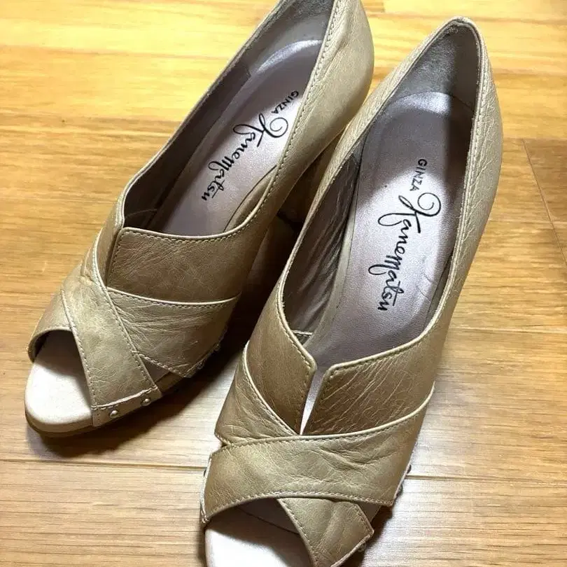 베이지 오픈토 펌프스, 스터드 장식으로 엘레강트한 디자인. - 브랜드: 긴자 카네마츠 - 색상: 베이지 - 힐 높이: 약 10cm - 디자인: 오픈토 - 장식: 스터드 장식 방문해 주셔서 감사합니다. 사이즈 - 21.5cm 색상 - 베이지 계열 힐 높이 - 7.1~10cm