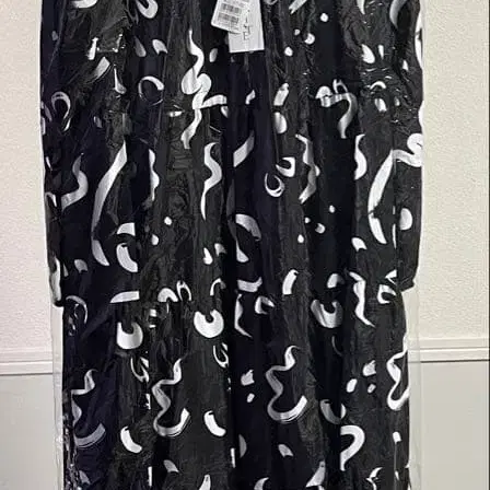 웨이브 페인트 올 패턴이 눈길을 끄는 티어드 원피스입니다.