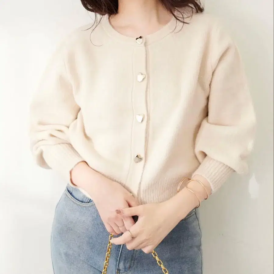 하트 버튼 크루넥 가디건