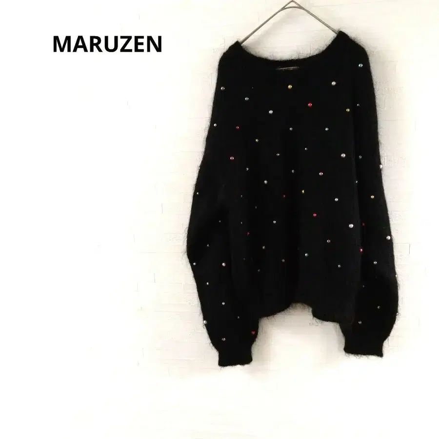 마루젠 니트 스웨터 비즈 장식 블랙 컬러풀 울 F