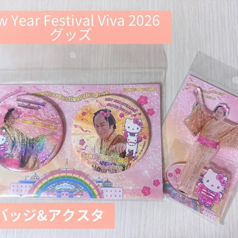 2026년 1월 1일부터 출시 New Year Festival Viva 2026 굿즈 산리오 퓨로랜드 퓨로랜드 오리지널 굿즈 마츠켄 삼바 키티 마츠다이라 켄 ◯ KEN MATSUDAIRA x HELLO KITTY 퓨로랜드 오리지널 굿즈 캔뱃지 세트 ◯ KEN MATSUDAIRA x HELLO KITTY 퓨로랜드 오리지널 굿즈 아크릴 스탠드(핑크) 2종 세트로 발송합니다.
