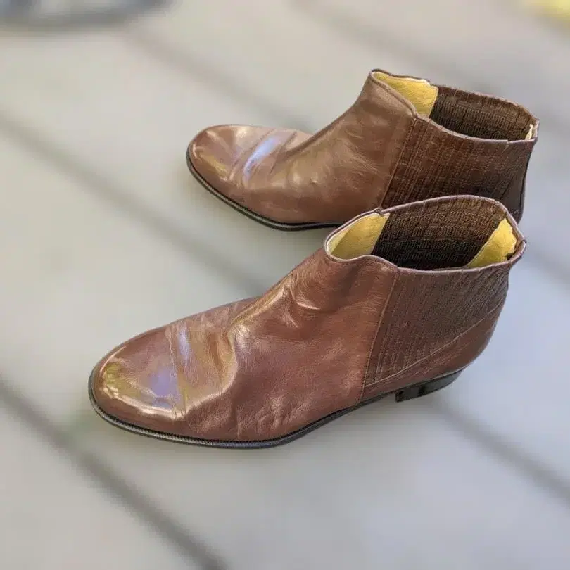 • 핏핏 사이드 고어 가죽 부츠 다크 브라운 22.5