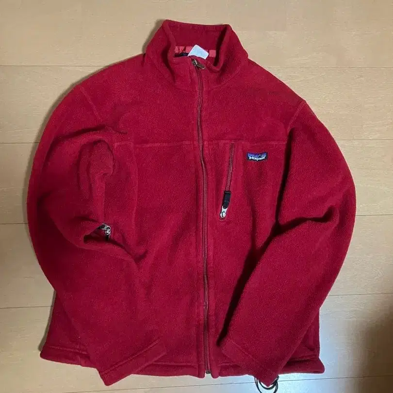 Patagonia의 레드 플리스 자켓, 풀 집업에 포켓이 있습니다. 사용감은 거의 없습니다.