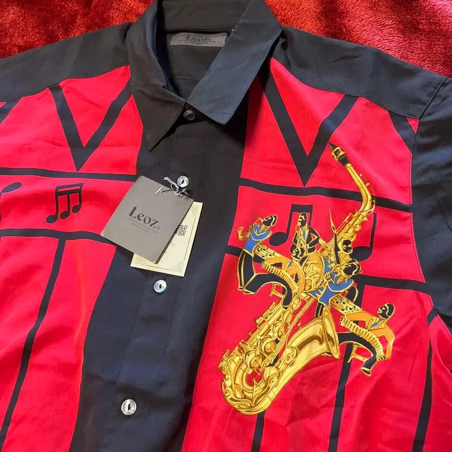 색소폰 연주자 그래픽이 특징인 Leoz의 L 사이즈 긴팔 셔츠. - 브랜드: Leoz - 색상: 빨간색/블랙 - 디자인: 색소폰 연주자 그래픽 - 사이즈: L - 소재: 신소재 - original desing. 50x 70 cm. 방문해 주셔서 감사합니다. 사이즈 - L