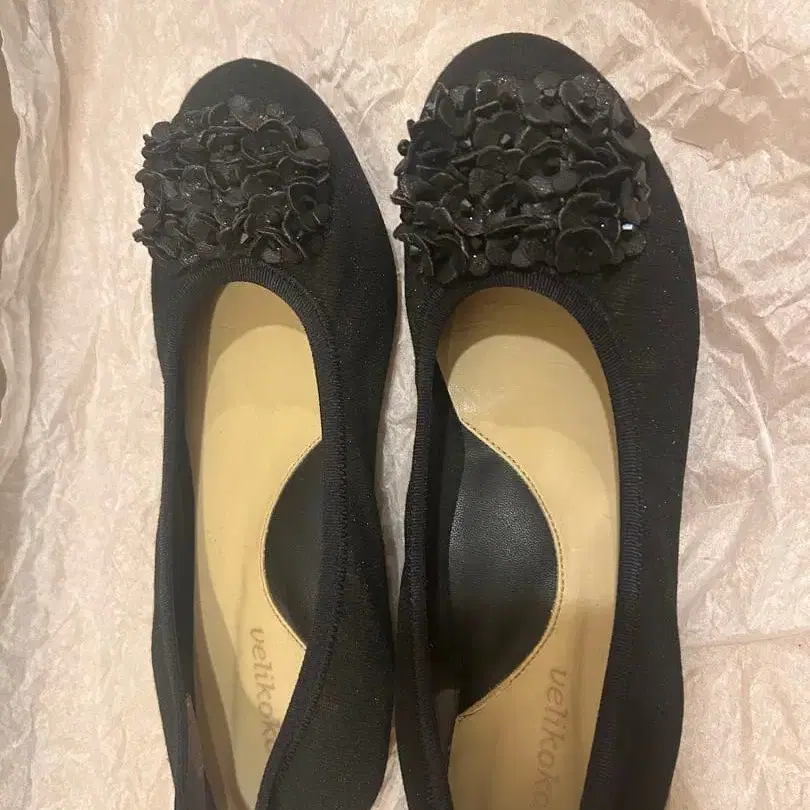 장식이 달린 블랙 플랫슈즈, 쾌적한 착용감. 마루이에서 구매했으며, 오피스에서 몇 번 신었을 뿐이라 상태가 좋습니다. - 브랜드: velikoko - 색상: 블랙 - 디자인: 플랫슈즈, 장식 포함 - 소재: 패브릭 소재, 합성 피혁 - 굽 높이: 낮은 굽 방문해 주셔서 감사합니다.