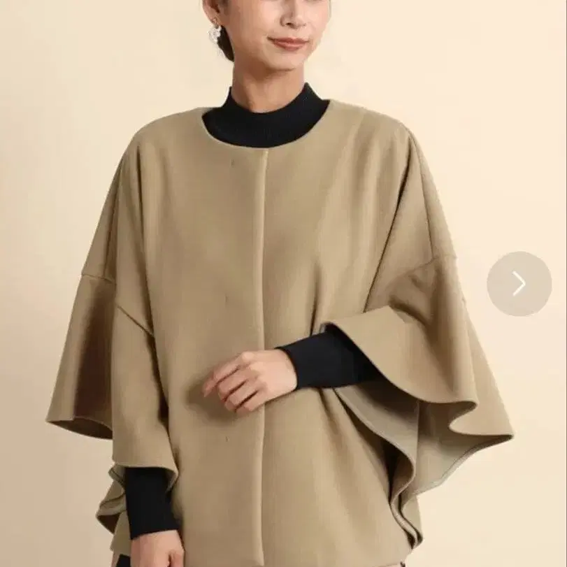 형태는 판초 타입이며 연한 카멜 색상이 조합하기 쉬운 컬러입니다 ◎