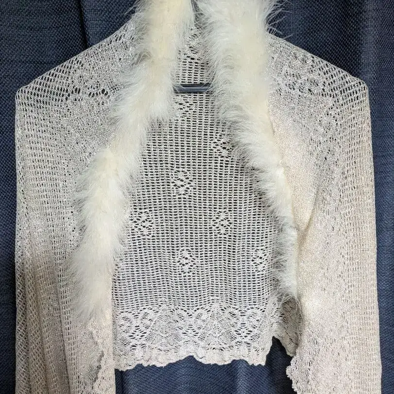아이보리 레이스 숄, 퍼(fur) 장식으로 엘레강트한 디자인.