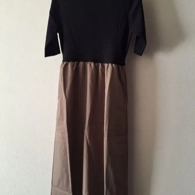 리브 편직의 블랙 탑과 스무스 소재의 베이지 스커트가 특징인 반팔 원피스. - 브랜드: Vin - 색상: 블랙/베이지 - 스타일: 반팔/롱 - 소재: 리브 편직/스무스 소재 방문해 주셔서 감사합니다.